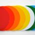 Ein weisses Eisengestell wird an die Wand geschraubt, in das man verschiedenfarbige Acrylronden stecken kann. So kann sich jeder seine eigenen Farben zusammenstellen.Die farbigen Scheiben werden von hinten mit einer Leuchtstoffröhre beleuchtet.